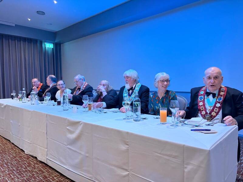 On Saturday the 15th of November the Province Dinner and dance was held at the Holiday Inn Telford. The meal and company was spot on as usual with the entertainment provided by the guest of honour, Provincial Grand Primo Bro Keith Porter ROH. As pictured, he was accompanied on the top table by his good buffess Jan along with the Wrekin ROH President Bro Mike Morris ROH, the Knights Chapter President Bro Lee Porter ROH, Deputy provincial Grand Primo Bro Stuart Adams ROH and the PGL Secretary Bro Jim Williamson ROH HM, with guests. The raffle was very generously supported by the party assembled from around the Province. Thanks to the ladies for the ticket tout (sales!) on the night, as a fantastic evening unfolded. Pictures from the tables were kindly provided by Bro John Bradley ROH.